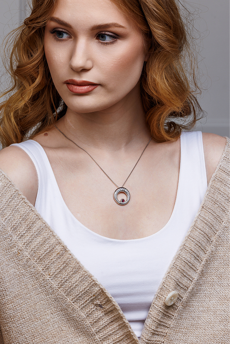 Кольцо из серебра со вставками из выращенного рубина и бесцветных фианитов