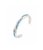 Широкий разомкнутый браслет из высококачественного серебра с родированием и вставками из сияющей выращенной шпинели голубого цвета.