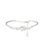 Браслет выполнен из высококачественного серебра 925 пробы с родированием и вставкой из крупного сияющего фианита. Необычность изделия подчеркивается футуристичным дизайном с объемными сферами, создающими эффект парящих пузырьков морской пены.