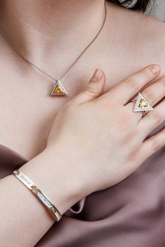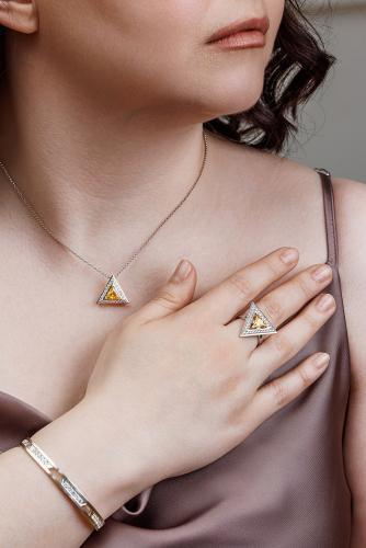Кольцо выполнено из высококачественного серебра с родированием и вставками из жёлтого и бесцветных фианитов.