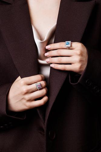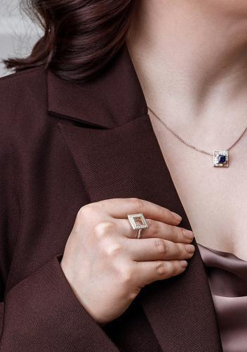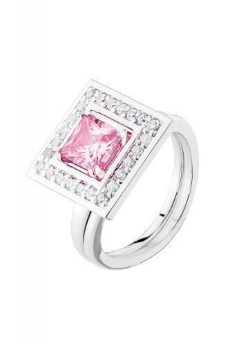 Кольцо выполнено из высококачественного серебра с родированием и вставками из розового и бесцветных фианитов.