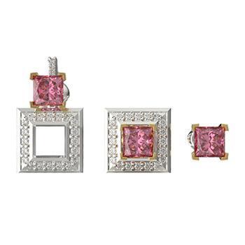 Кольцо сборное из серебра со вставками из розового и бесцветных фианитов