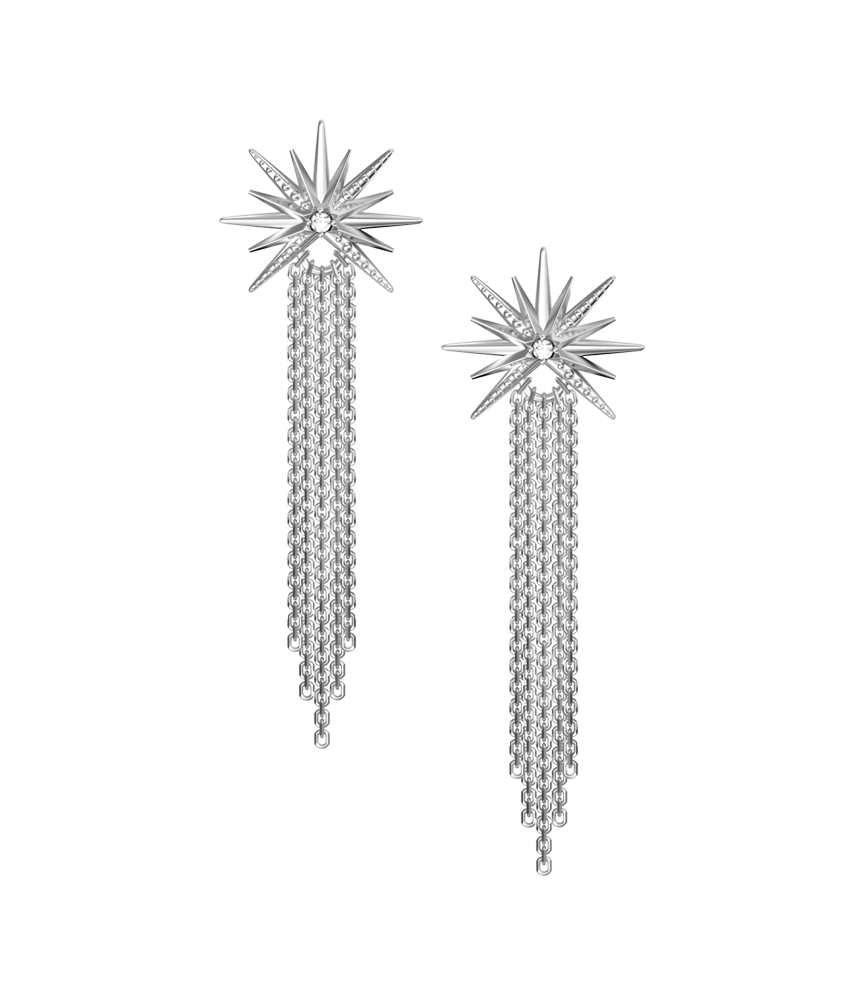 Холодный глянец серебра, искристый блеск бриллиантов и сапфиров, россыпь крошечных шариков - всё собрано в идеальной форме звезды, нежно мерцающей среди ночного неба. Каждая звезда коллекции составляет прекрасные композиции с остальными, а ниспадающие цепочки добавят динамики в ваш образ.