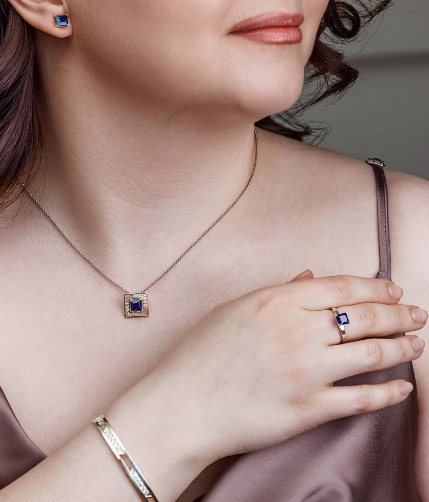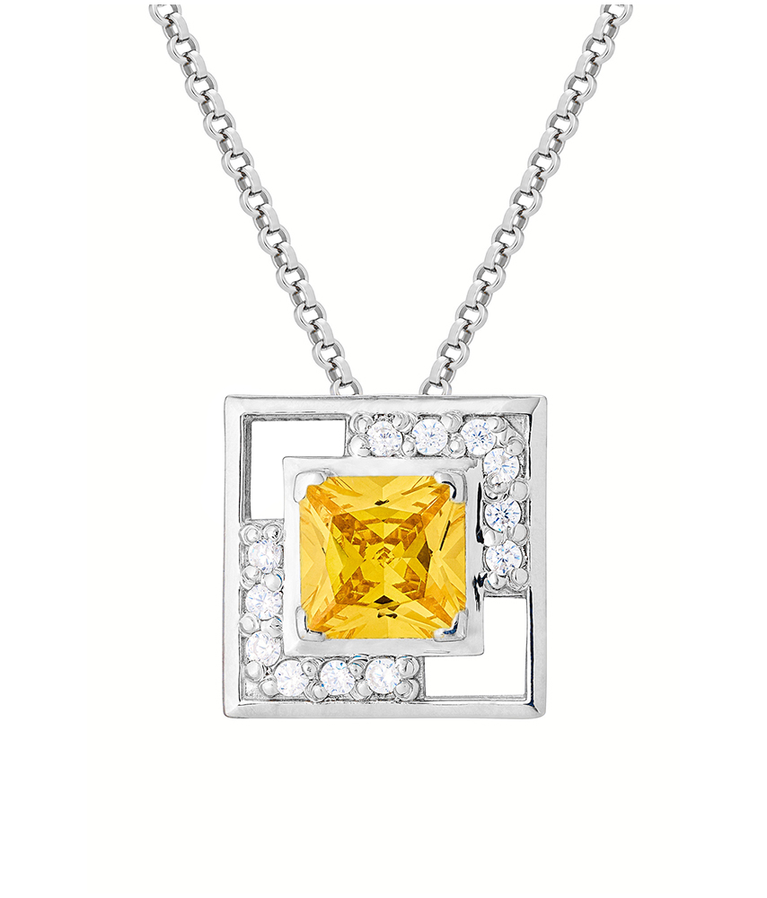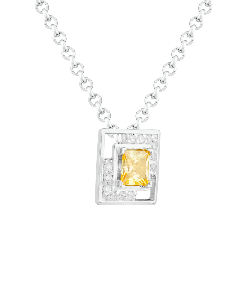Подвес на шею выполнен из высококачественного серебра 925 пробы с защитным родиевым покрытием, которое сохраняет первозданный блеск металла на долгие годы. Яркий цвет фианитов добавляют особую красоту и блеск, подчеркивая вашу индивидуальность. Дизайн подвеса позволяет создавать бесконечные комбинации образов с ювелирными украшениями из коллекции ''Геометрия цвета''.