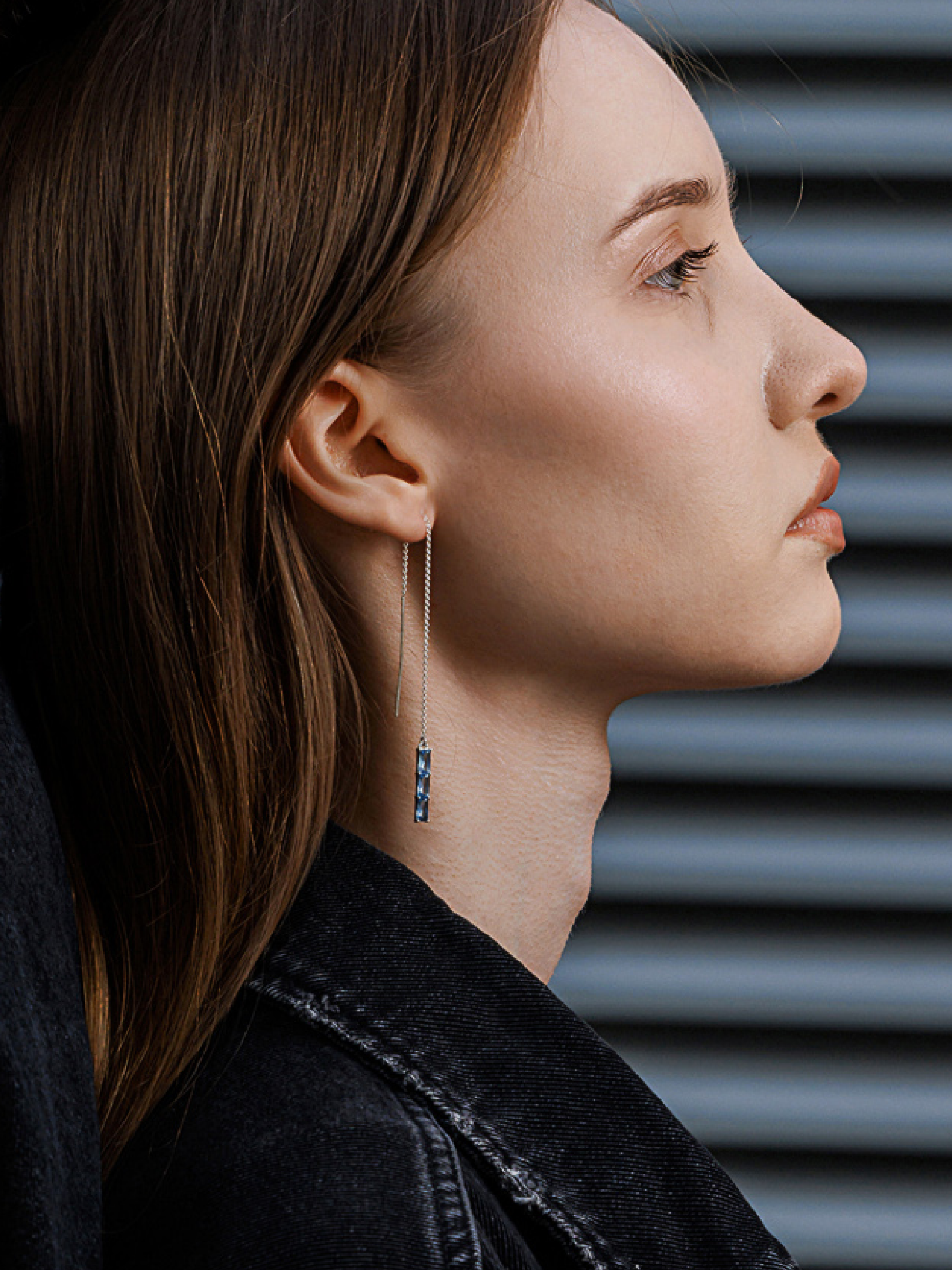 Моносерьга-продёвка из высококачественного серебра с родированием и вставками из выращенной голубой шпинели, которая станет идеальным аксессуаром на каждый день.