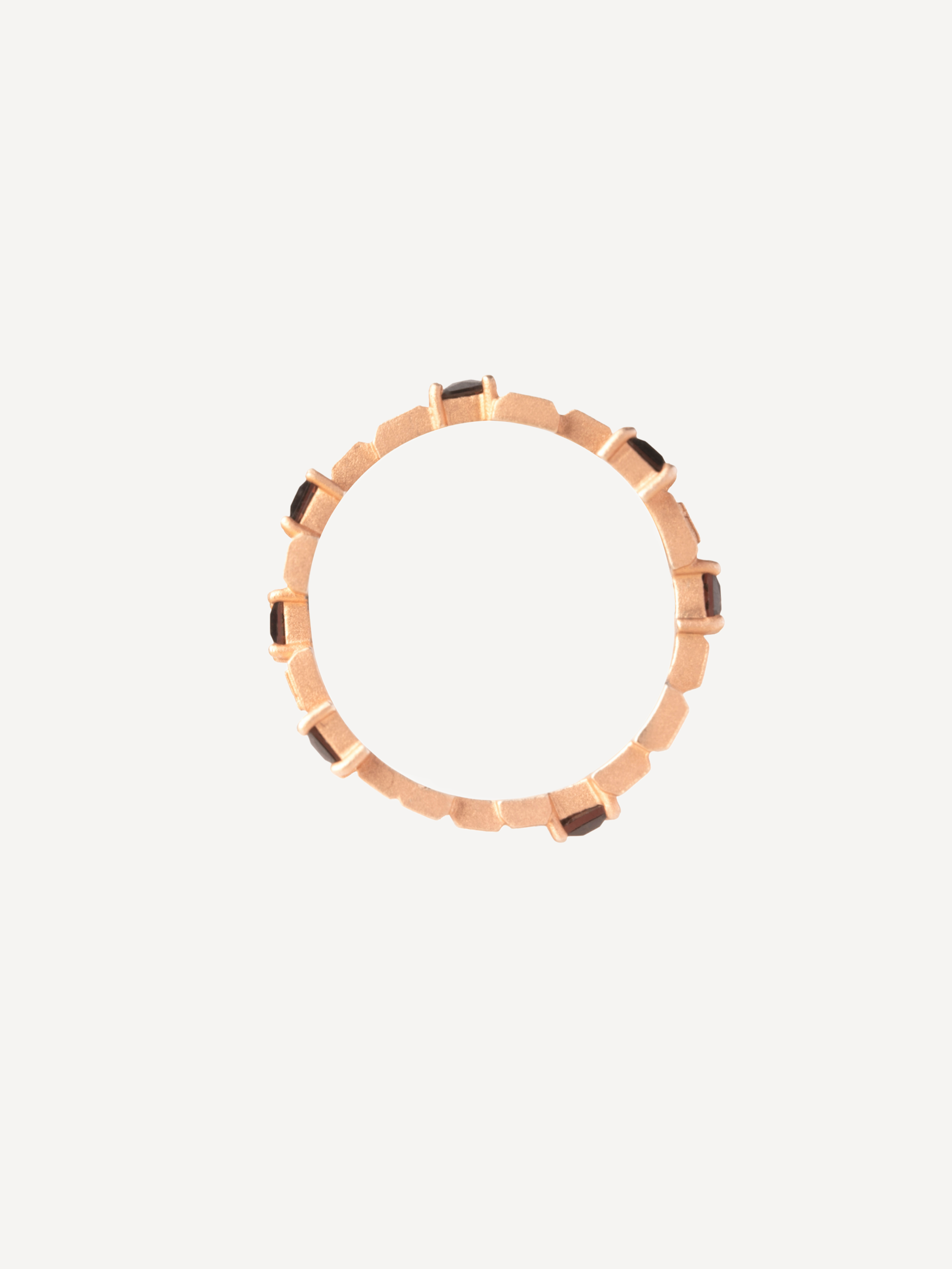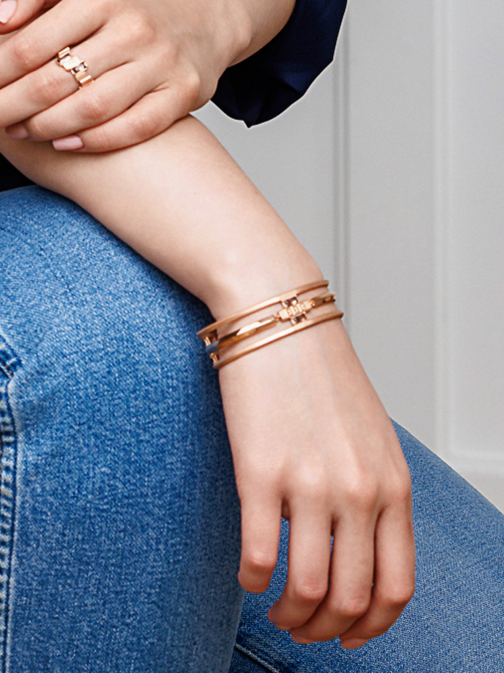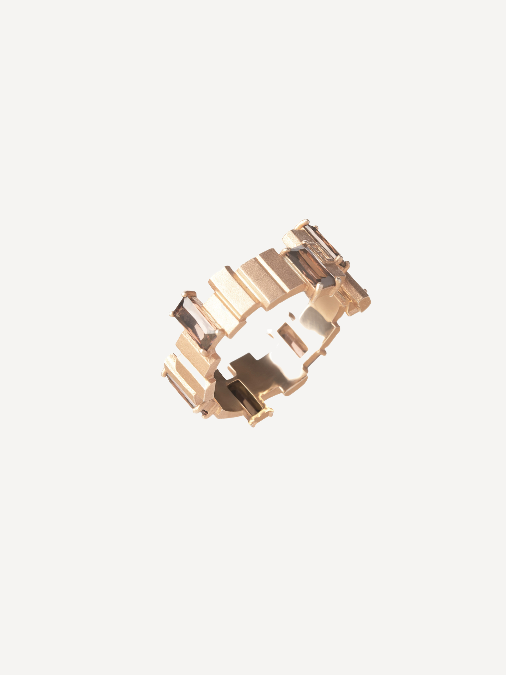 Современный ар-деко встречается здесь с теплом редких камней и нежным блеском розового золота. Чёткая геометрия и чистые линии создают элегантную форму, которая остаётся лёгкой и комфортной.
