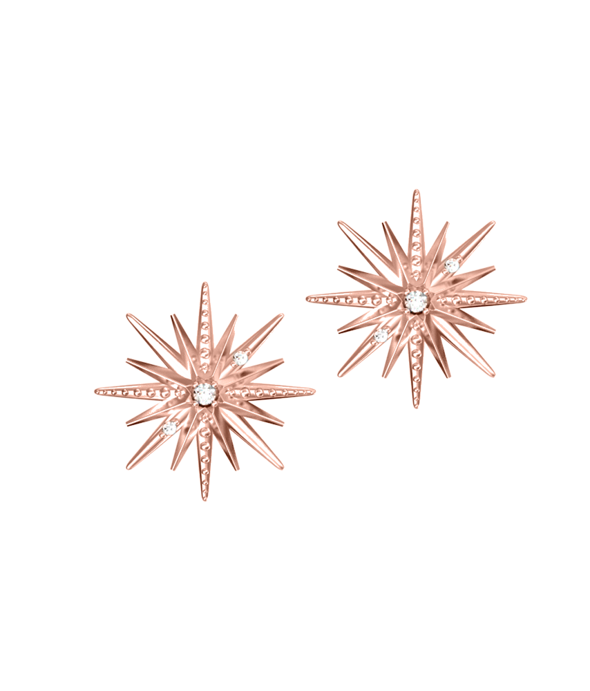 Серьги-пусеты «Большая звезда» выполнены из высококачественного серебра 925 пробы с золочением и вставками из выращенного бриллианта.