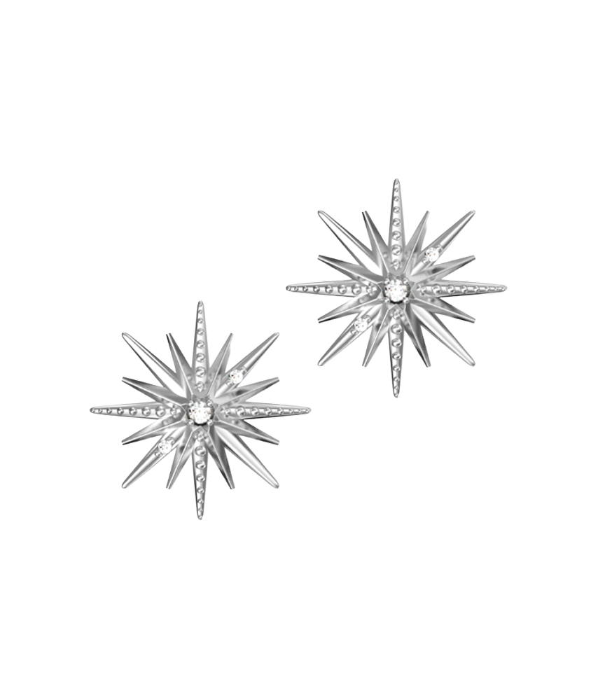 Серьги-пусеты «Большая звезда» выполнены из высококачественного серебра 925 пробы с родированием и вставками из выращенного бриллианта.