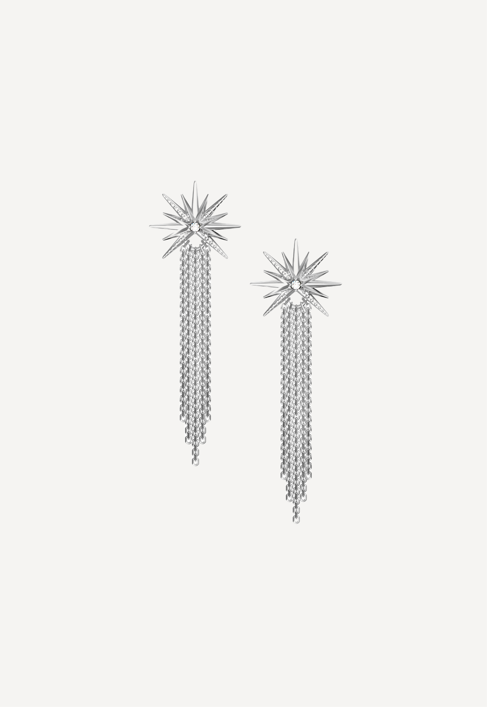 Холодный глянец серебра, искристый блеск бриллиантов и сапфиров, россыпь крошечных шариков - всё собрано в идеальной форме звезды, нежно мерцающей среди ночного неба. Каждая звезда коллекции составляет прекрасные композиции с остальными, а ниспадающие цепочки добавят динамики в ваш образ.