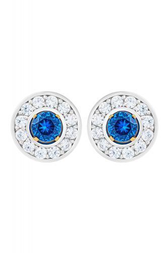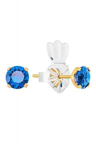 Классические серьги-пусеты из высококачественного серебра с родированием и вставками из выращенной шпинели синего цвета.
